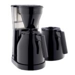 • Glass carafe with 5 cup capacity, and keep warm plate